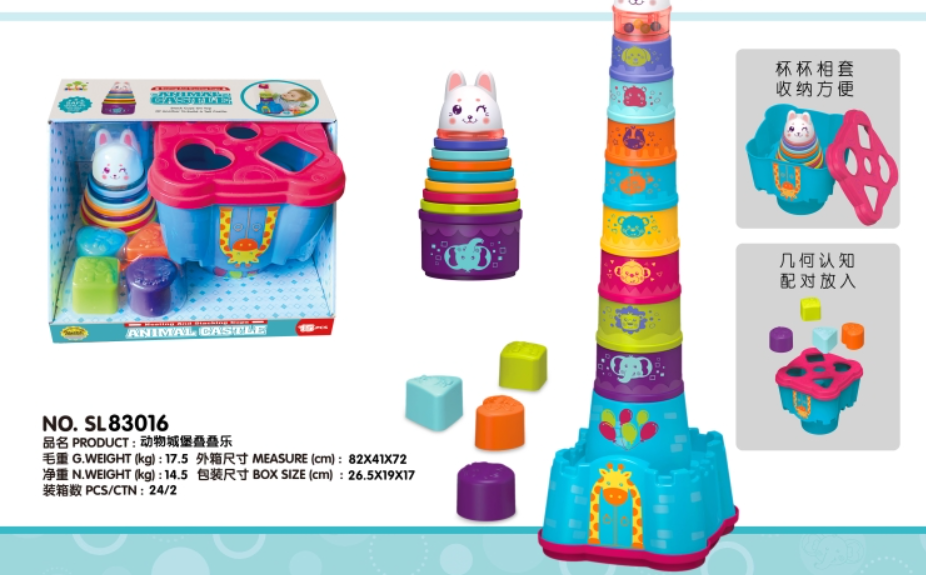 Babies are attracted to different colors&patterns who will stack the cups or insert one into another.This can stimulate babies model building skills and develop sense of achievement.Stack cups on top of another to build a tall castle.