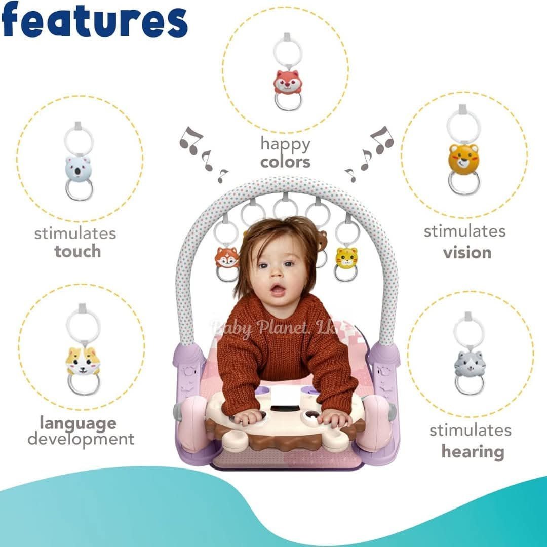Animal Theme Fitness Pedal Piano Gym Play Mat is a fun and interactive play mat designed to promote your baby’s physical, sensory, and cognitive development. The mat features a colorful animal-themed design, complete with cute hanging rattles, a musical piano with pedal functionality, and multiple textures for sensory exploration. Ideal for newborns and young infants, this play gym encourages movement, exploration, and coordination while keeping your baby entertained.