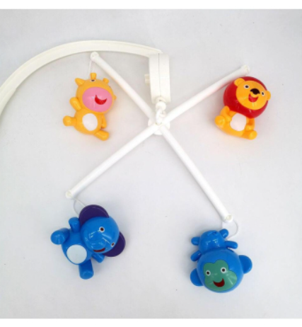 Musical carousel with 4 animal figures: elephant, lion, giraffe and monkey. Carousels soothe the baby with their sound and movement and help them fall asleep. It is easy to hang on the crib and is stable. The four animal figures can be removed to help baby recognize the names and characteristics of the animals. The movements of the animals are accompanied by a playful melody, and they are positioned so that the baby can see them more easily while lying down. Dimension: 46*33*65cm, age: 0+