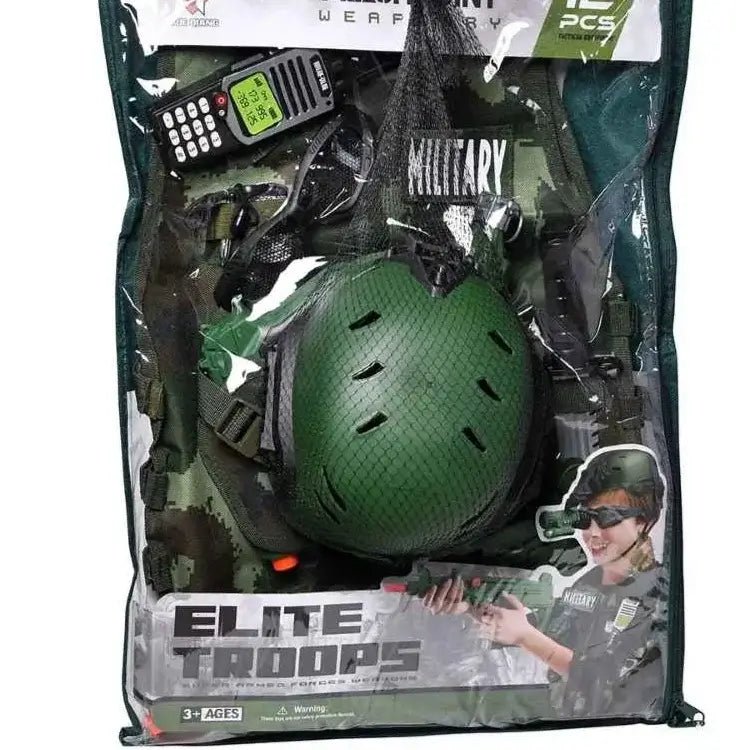 مجموعة الجندي العسكرية هي طقم لعب تمثيلي متكامل مصمم للأطفال من عمر 4ء7 سنوات، تضم مستلزمات عسكرية واقعية.