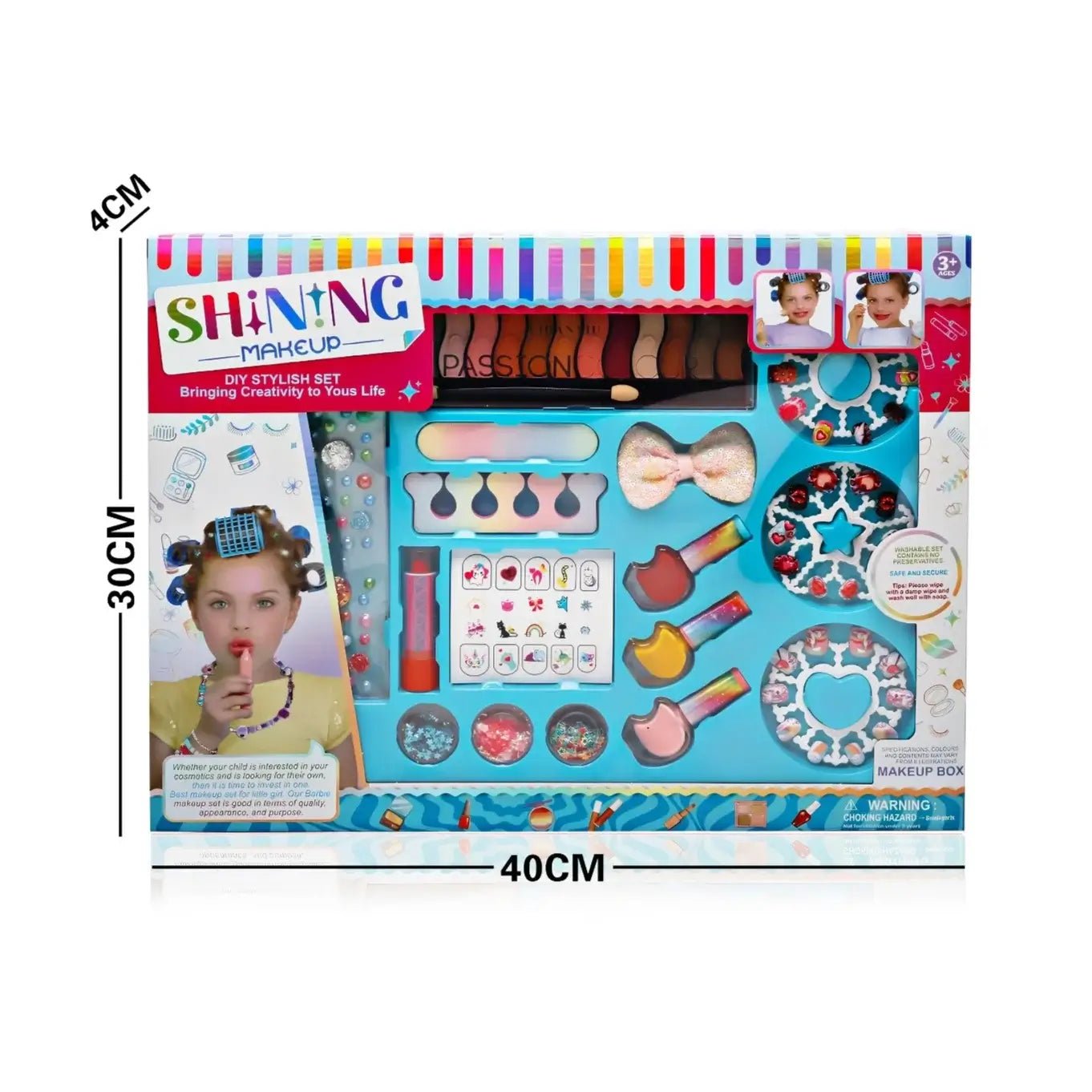 مجموعة المكياج البرّاقة هي طقم تجميل عصري للتركيب مصمم خصيصاً للأطفال من عمر 3 سنوات فما فوق.